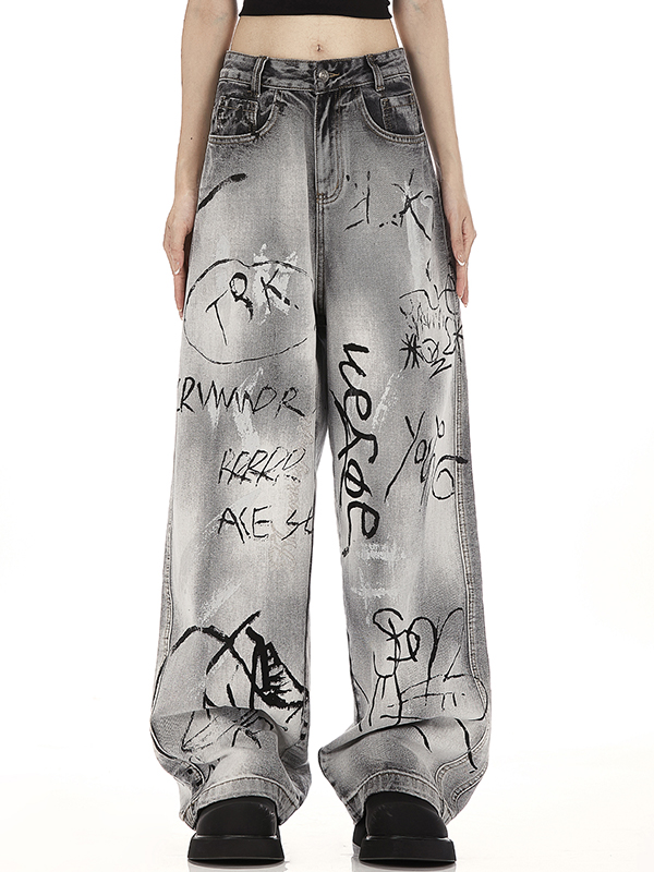 American Retro High Street Graffiti Boyfriend Jeans