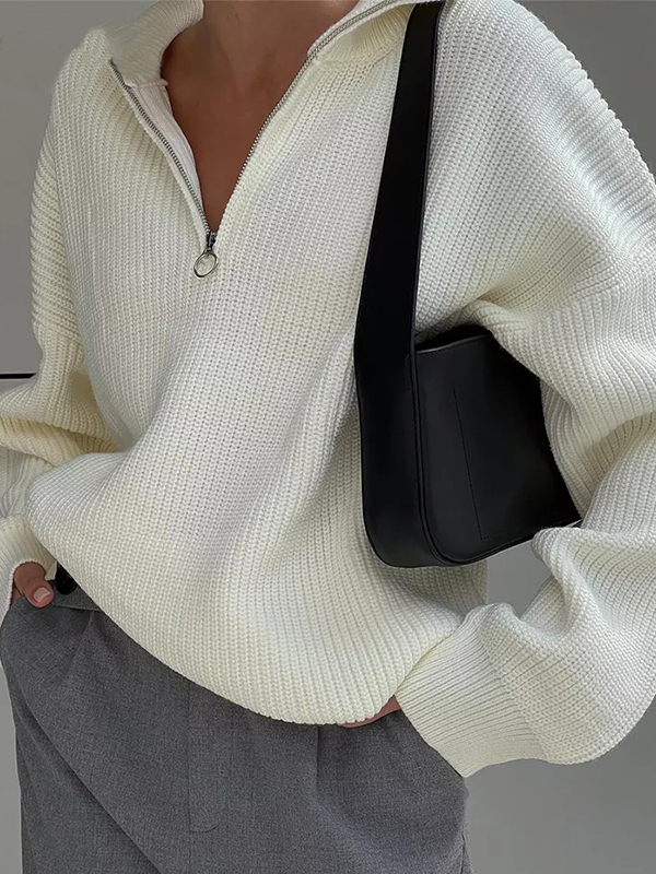 Solid Color Zipper Sweaters