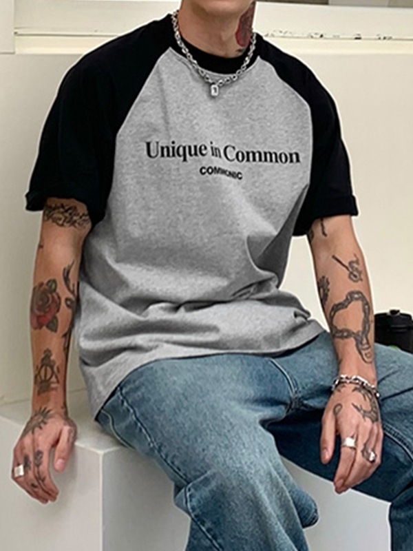 Men’s Letter Print Raglan Short Sleeve Tee