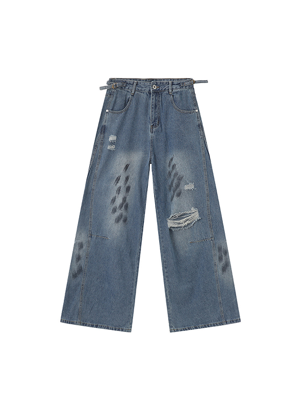 Street Distressed Holes Loose Jeans