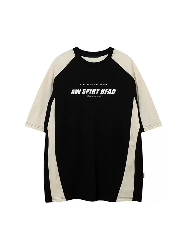 Men’s Letter Print Contrast Color Short Sleeve Tee