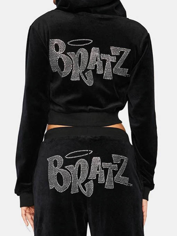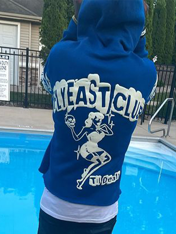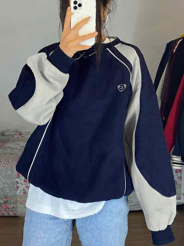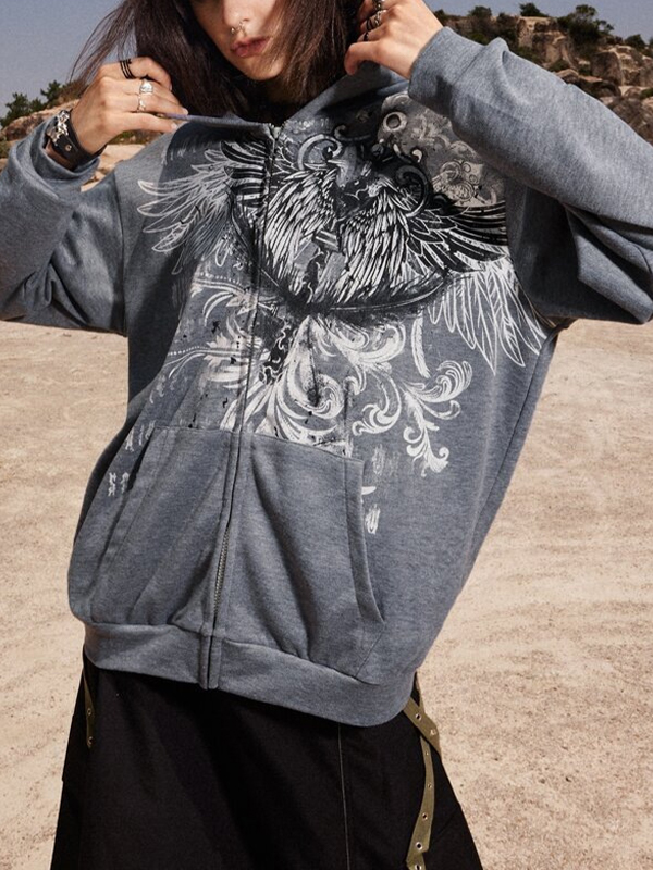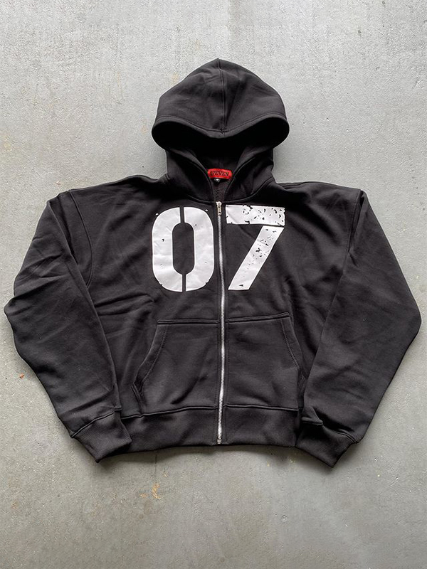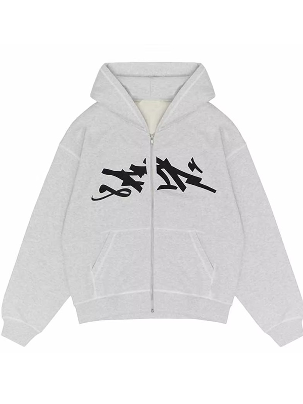 Distressed Contrast Color Embroidered Zip Up Oversized Hoodie