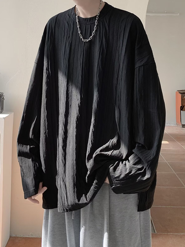 Men’s Solid Textured Crew Neck Long Sleeve Tee