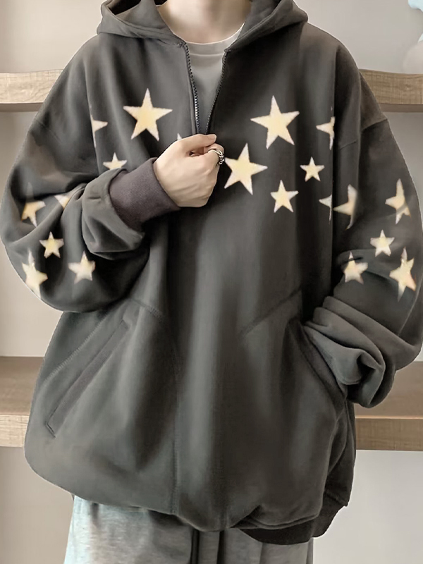 Men’s Star Print Oversized Half Zip Hoodie