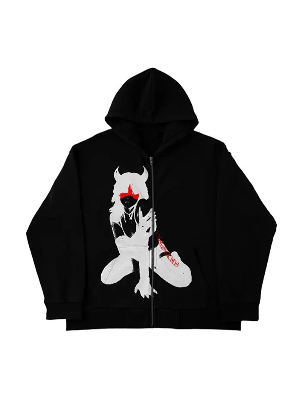 Men’s Character Print Zip Up Oversized Hoodie