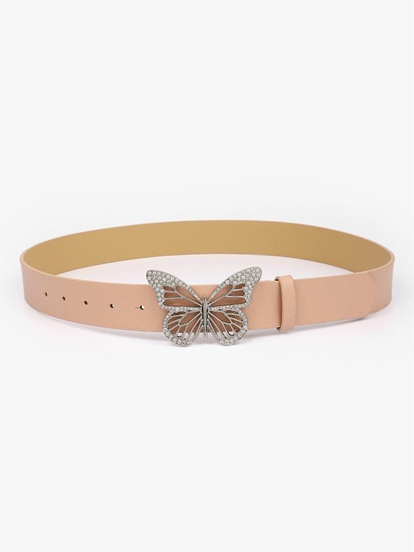 Rhinestone Butterfly Pu Leather Belt