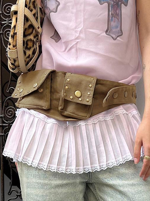 Vintage Brown Rivet Decor With Pocket Belt