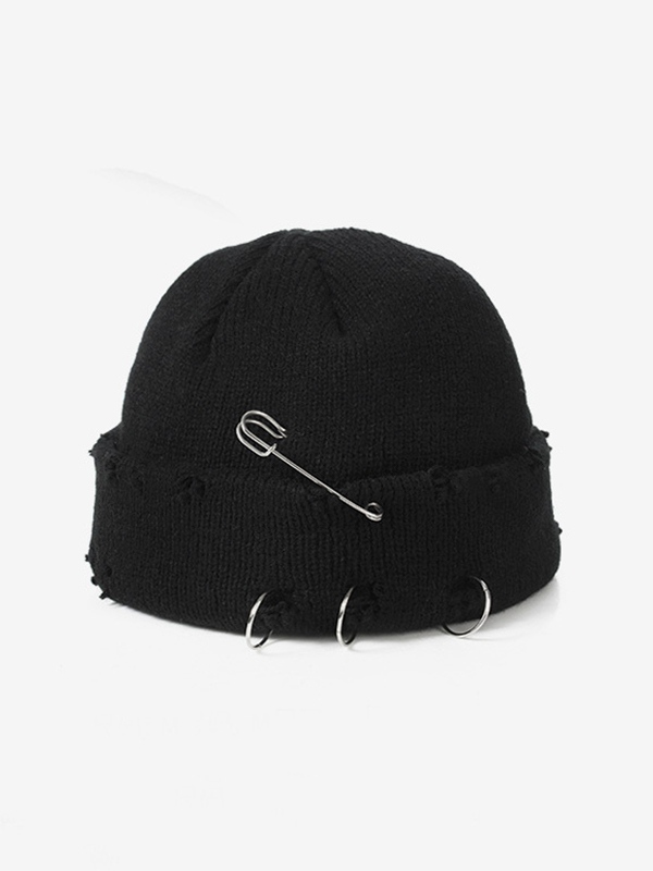 Safety Pin Distressed Knitted Beanie Hat