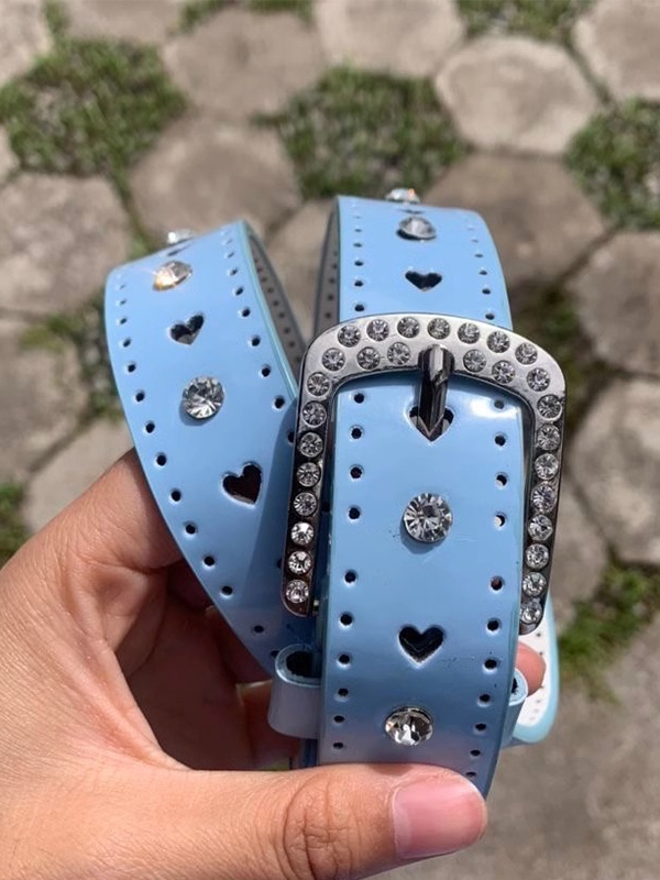 Y2K Heart Cutout Shiny Rhinestone Buckle Belt