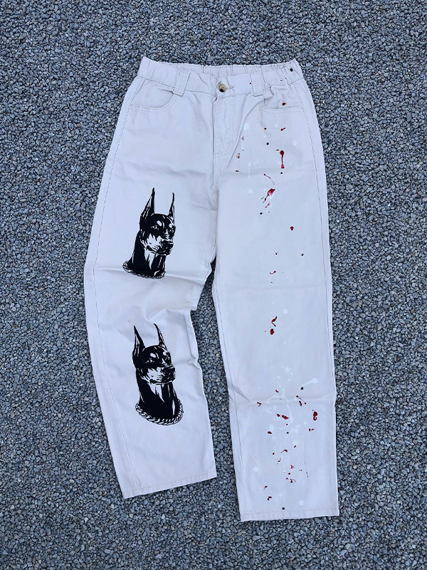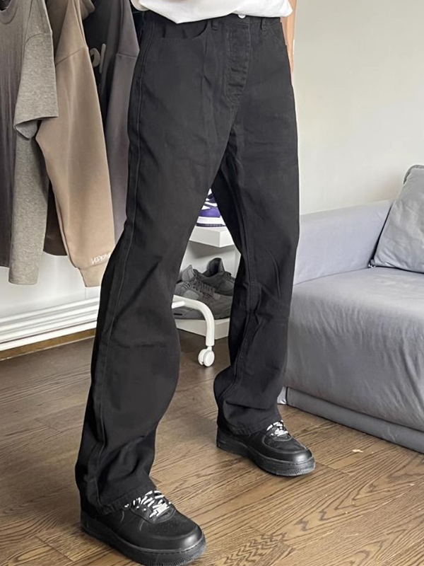 Men’s Fit Semi-Elastic Waist Straight-Leg Loose Jeans