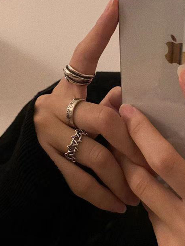 3Pcs Silver Adjustable Distressed Ring