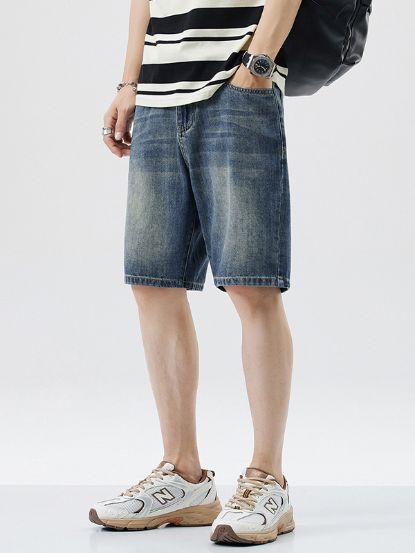 Men’s Washed Loose Straight Denim Shorts