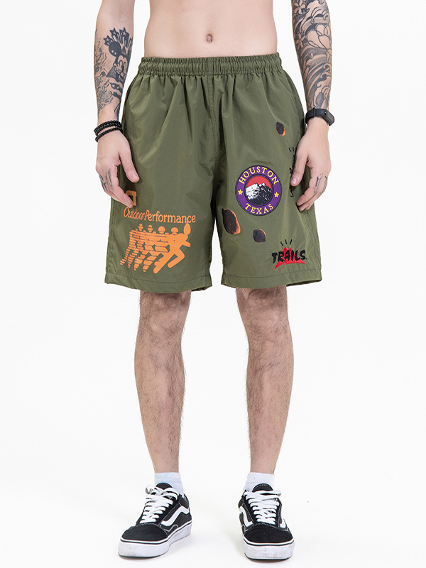 Hip Pop Contrast Letter Print Drawstring Shorts