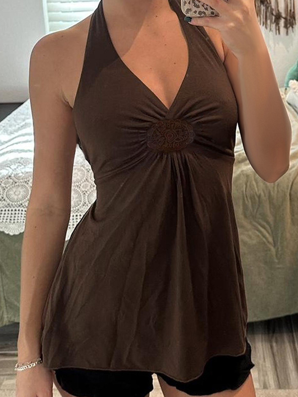 French Neck Tie Halter Vest