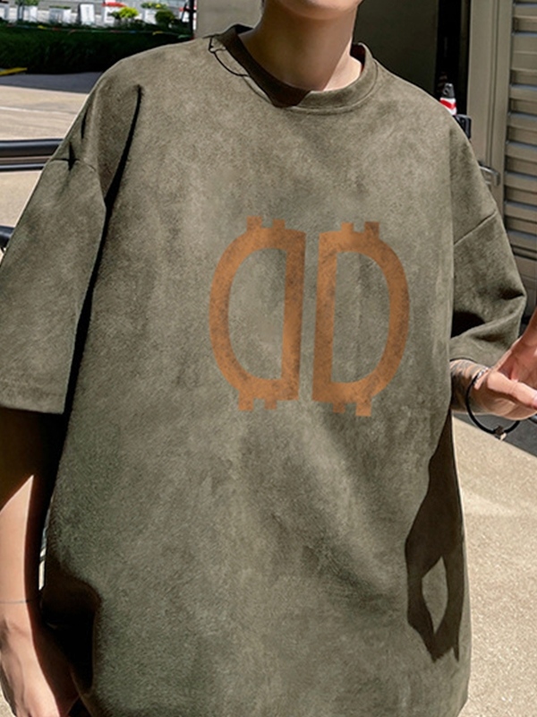 Men’s Letter Suede Oversized Short Sleeve Tee