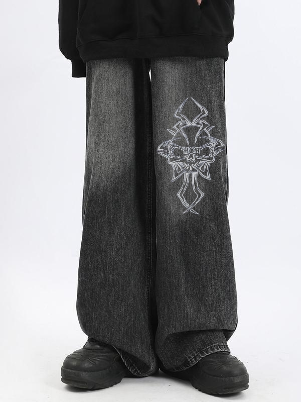 Retro Washed Lightning Pattern Deconstruction Boyfriend Jeans