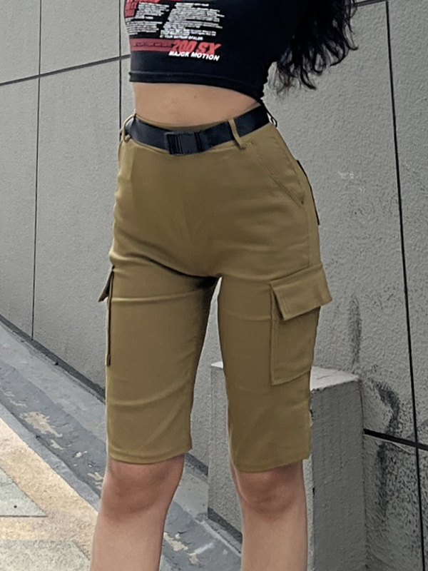 Multi Pocket With Buckle Belt Shorts