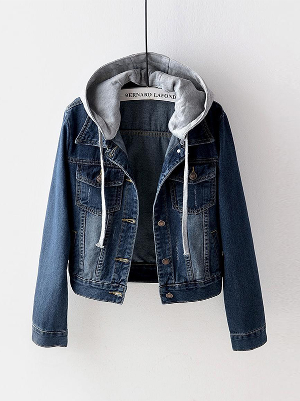 Fake two piece hooded denim jacket