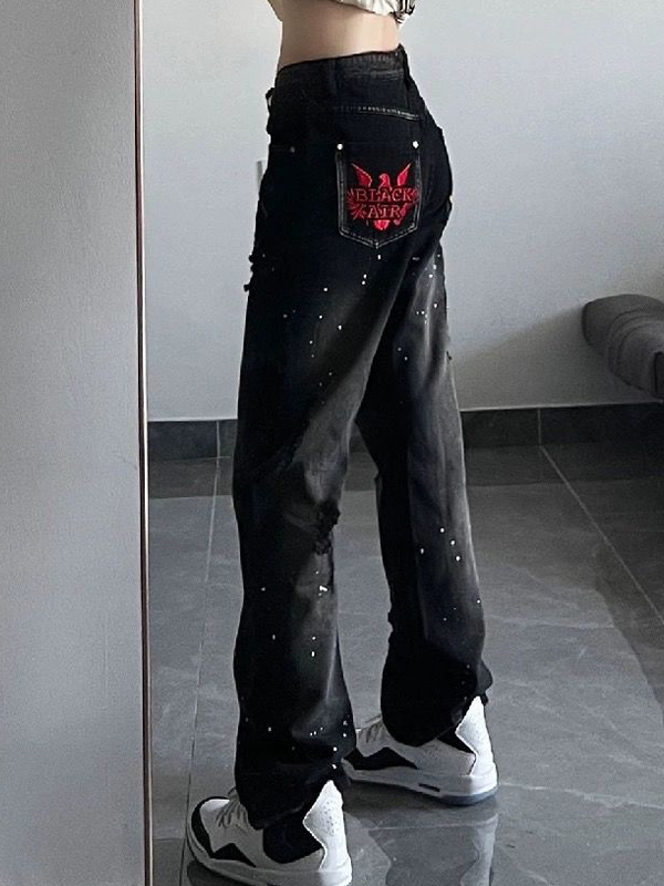 Old Black Splash Ink Boyfriend Jeans