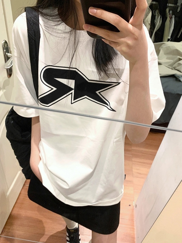 Stripe Star Print Patchwork Slim Long Sleeve Tee
