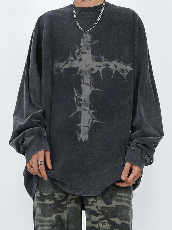 Bat Print Breasted Irregular Hem Long Sleeve Tee