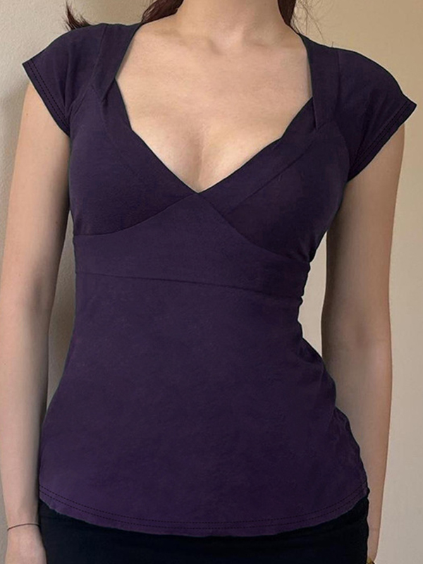 Solid Off Shoulder Irregular Slit Hem Long Sleeve Tee