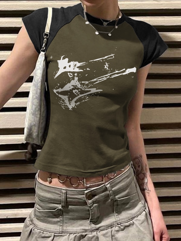 Vintage Guitar Raglan Sleeve Crop Top