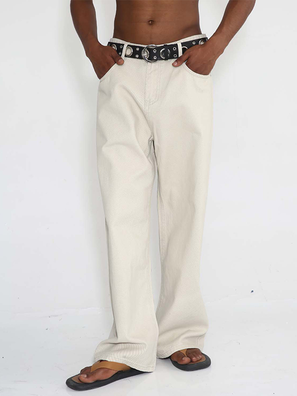 Mid-High Waist Solid Color Loose Jeans