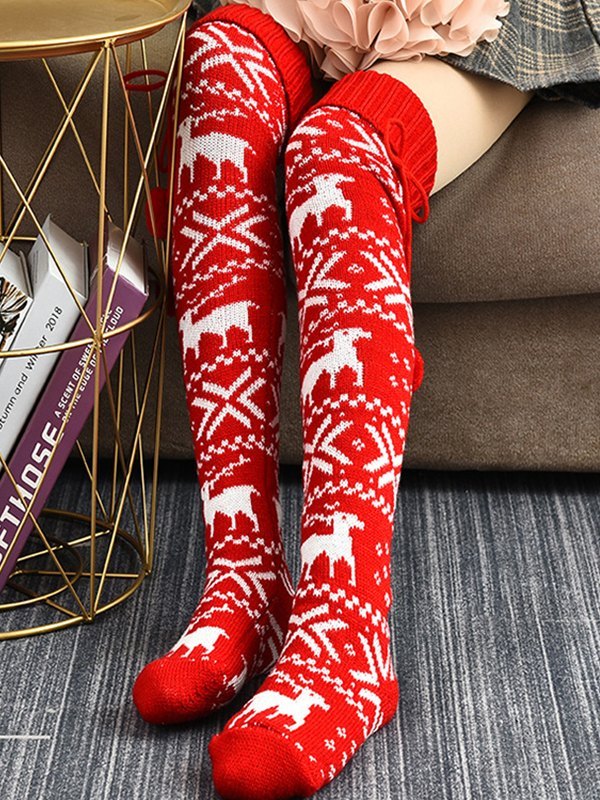Christmas Jacquard Knee High Socks