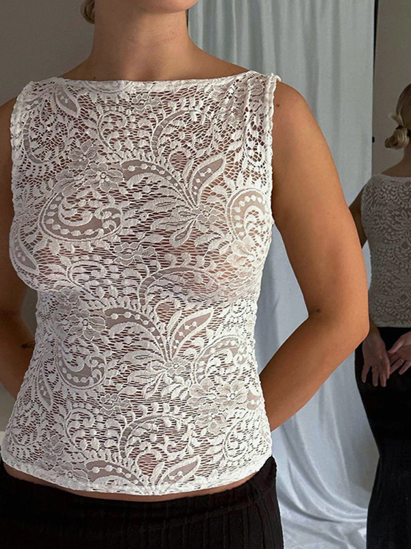 Plain Lace Cutout Tank Top