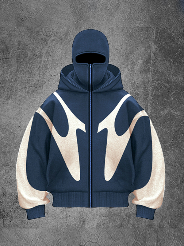 Contrast Color Spider Print Full Zip Oversized Hoodie