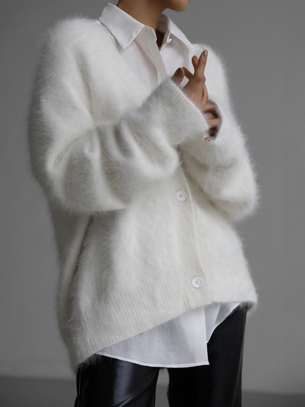 Fuzzy V Neck Loose Cardigan Sweater