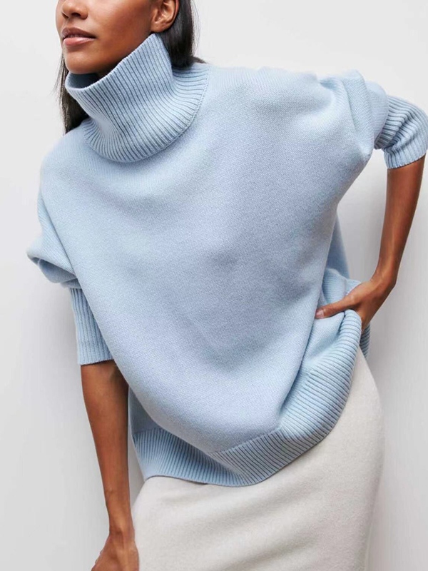 Solid High Neck Loose Sweater