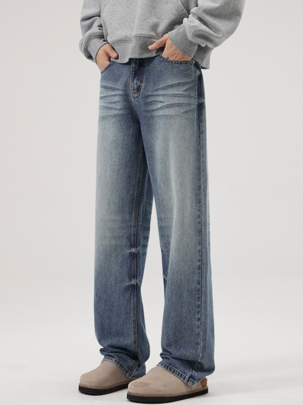 American Retro Washed Wide Legs Loose Jeans
