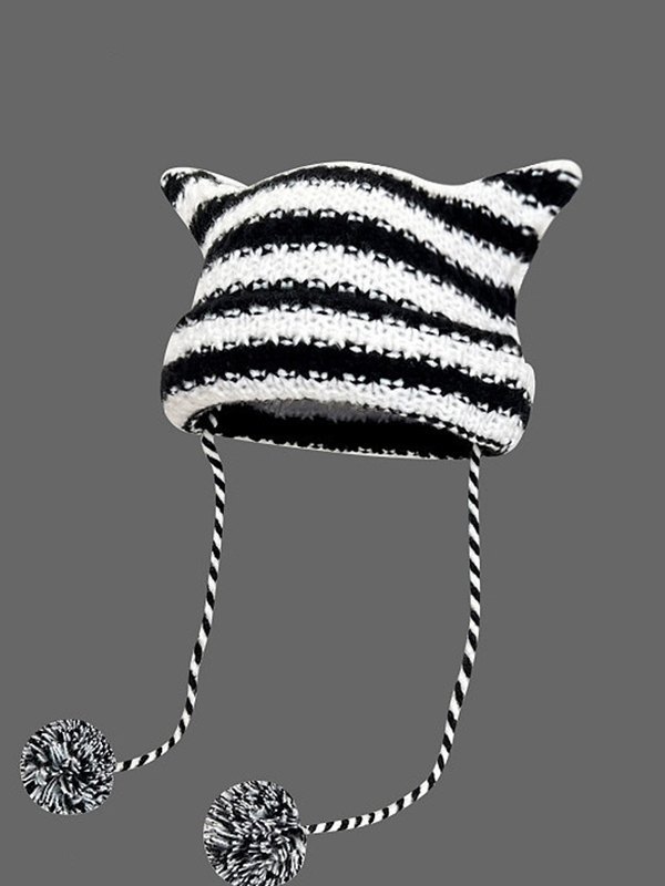 Be the first to review “Horn Detail Striped Knitted Hat”
