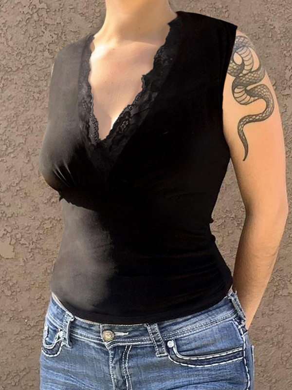 Lace Patchwork V-Neck Tank Top