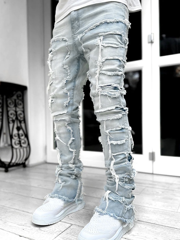 Unique Design: The light blue wash design gives these jeans a fresh and modern look, perfect for those who like to stand out from the crowd. The raw trim design adds a touch of street and hip popStyle, making these jeans a must have for fashion forward individuals.
