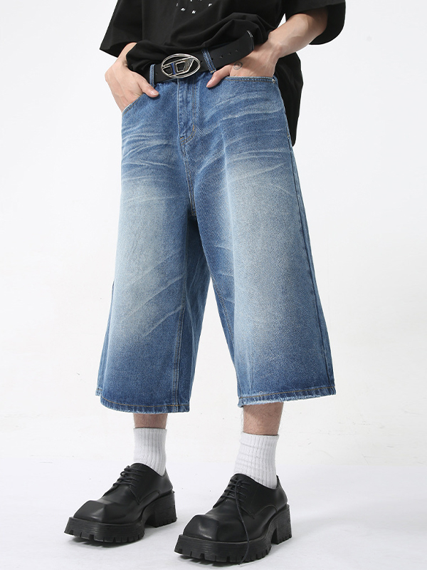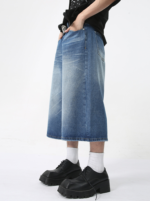 Men’S Retro Casual Straight Loose Wide Leg Shorts