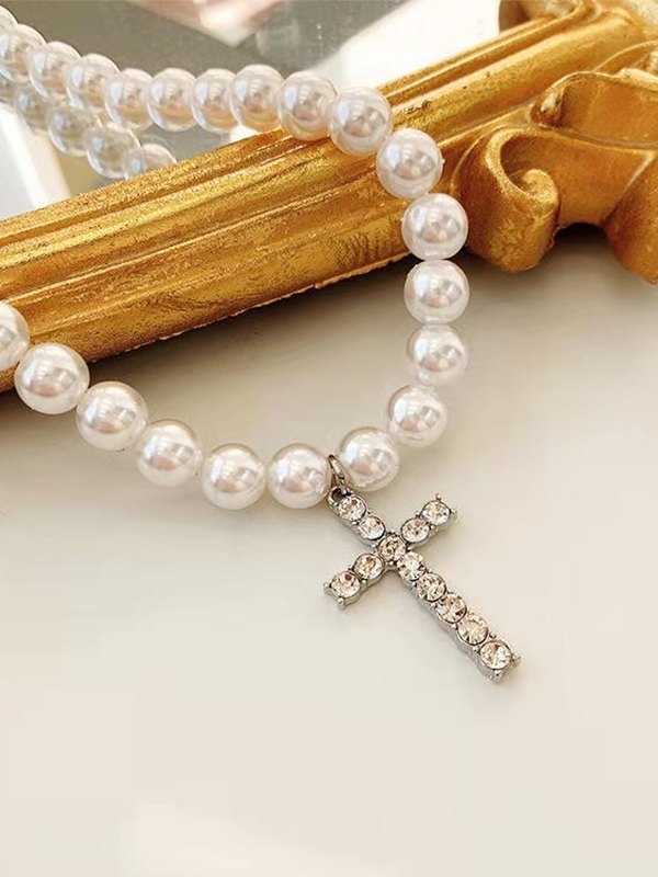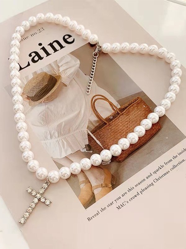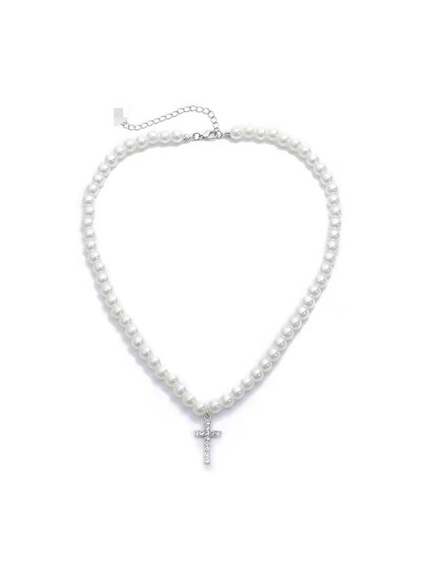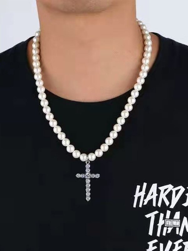 Be the first to review “Men’s Rhinestone Cross Pendant Faux Pearl Necklace”