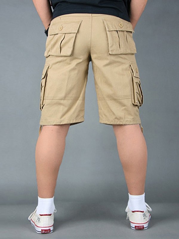 Description: These function cargo shorts for mens cut to a slim straight-leg silhouette, it has cargo-style leg pockets, with drawstring tie detail on the cuffs, and a button zip fly closure design.