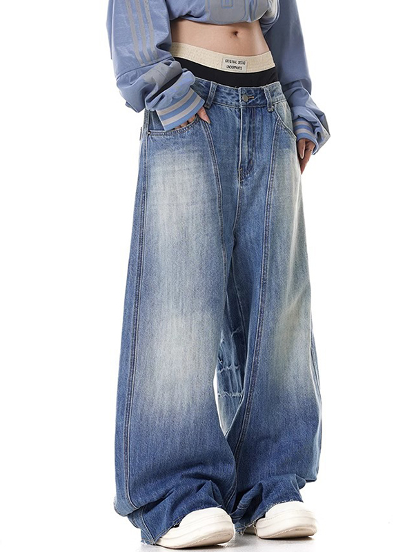 Be the first to review “Retro Washed Lightning Pattern Deconstruction Boyfriend Jeans”