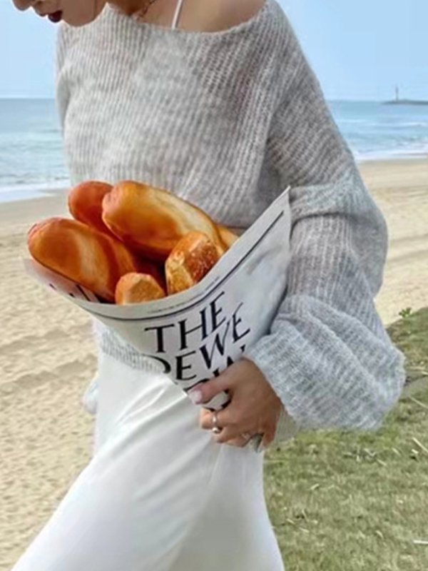 See Through Solid Loose Short Long Sleeve Knit