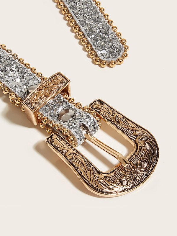 Be the first to review “Sequin Carved Buckle Skinny Belt”