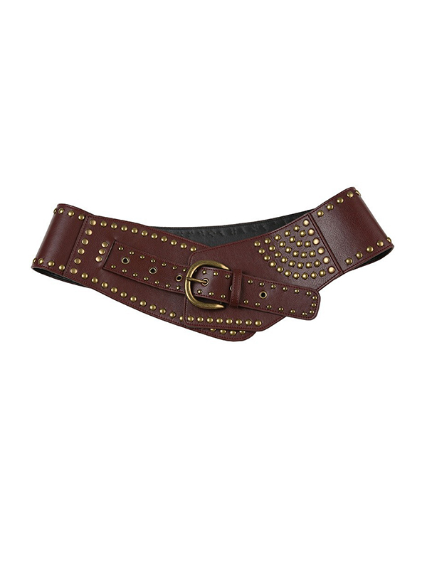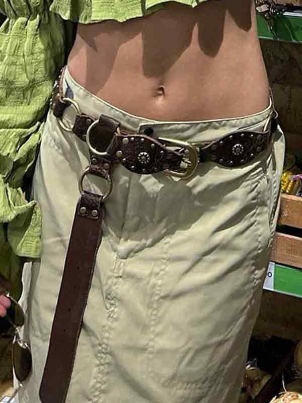 Vintage Rivet Cutout Ring Leather Patchwork Buckle Belt