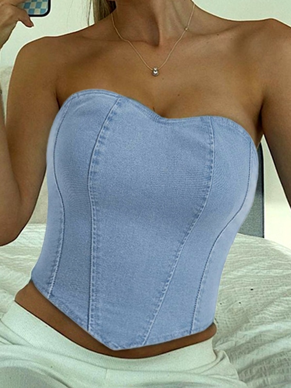 Vintage Denim Irregular Hem Corset Bandeau Top