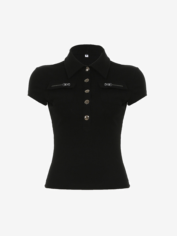 Solid Color Slim Fit Pleated Casual Short Sleeves Shirts
