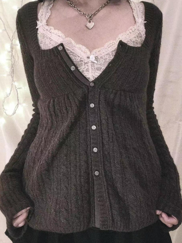 Sweet Style Lace Stitching Cardigan