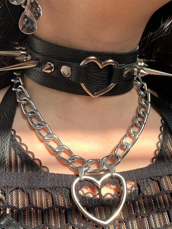 Chunky Heart Charm Chain Necklace