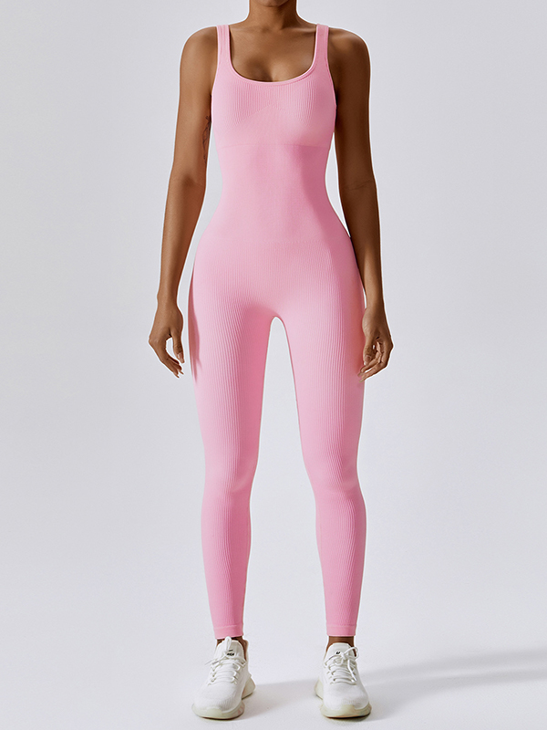 Solid Elastic U Neck Jumpsuit