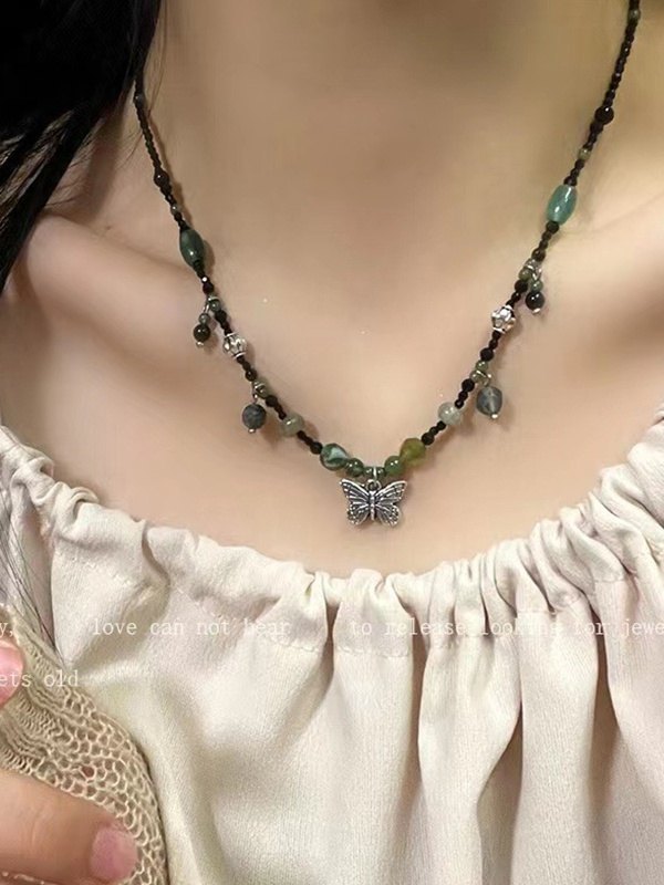 Vintage Butterfly Beaded Necklace